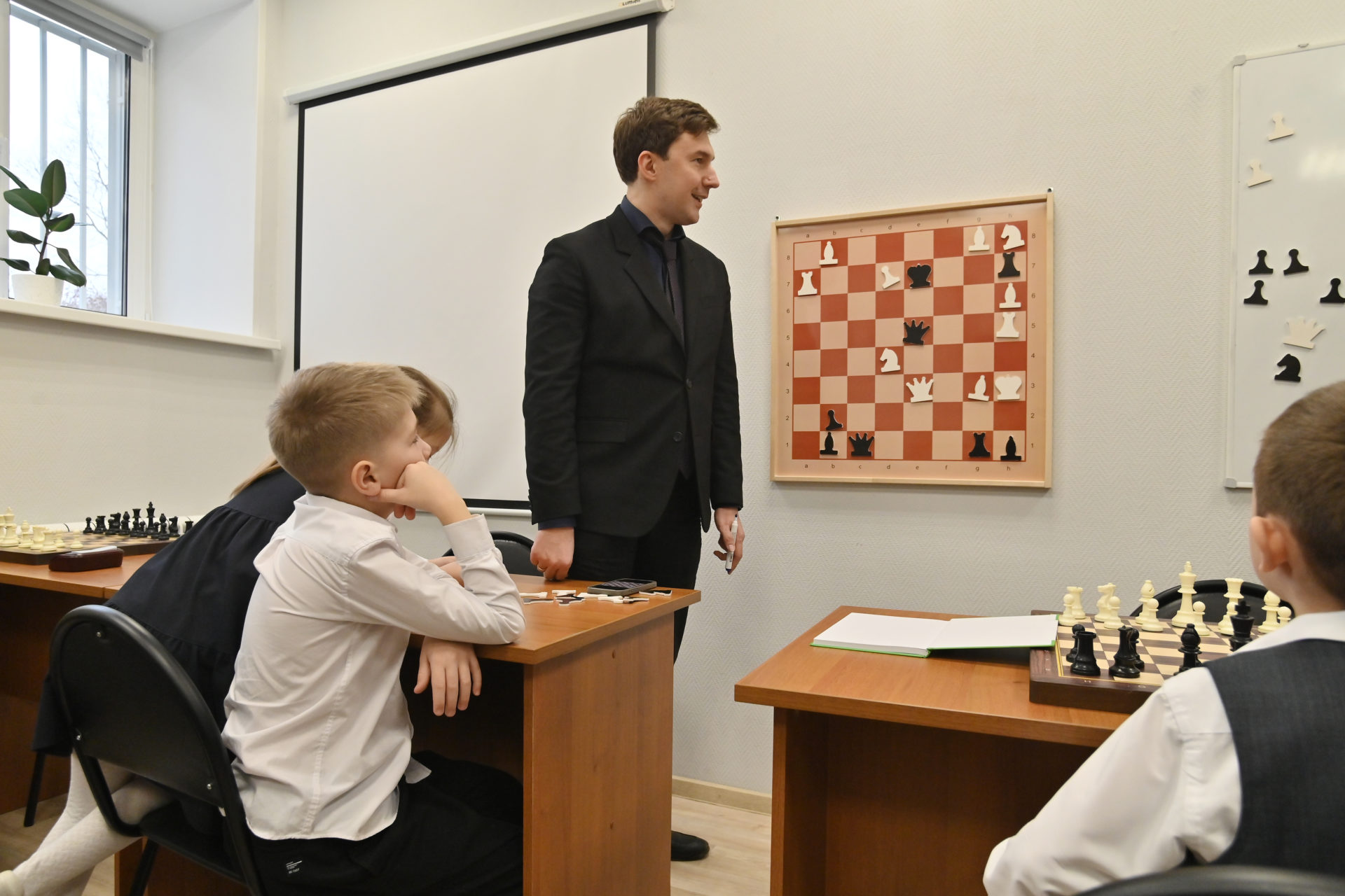 Международный гроссмейстер Сергей Карякин сыграл в Рязани с юным шахматистом Богданом Батиным