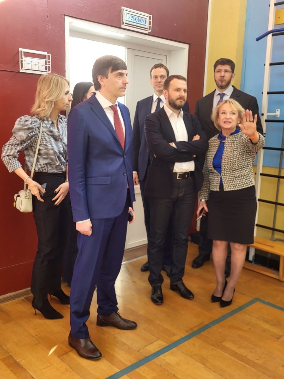 Гости осмотрели спортзал, кабинет биологии, центр школьных инициатив, методический центр ОБЖ, где проходили занятия. В рамках Года педагога и наставника Министр просвещения РФ Сергей Кравцов вручил награды лучшим учителям школ области.