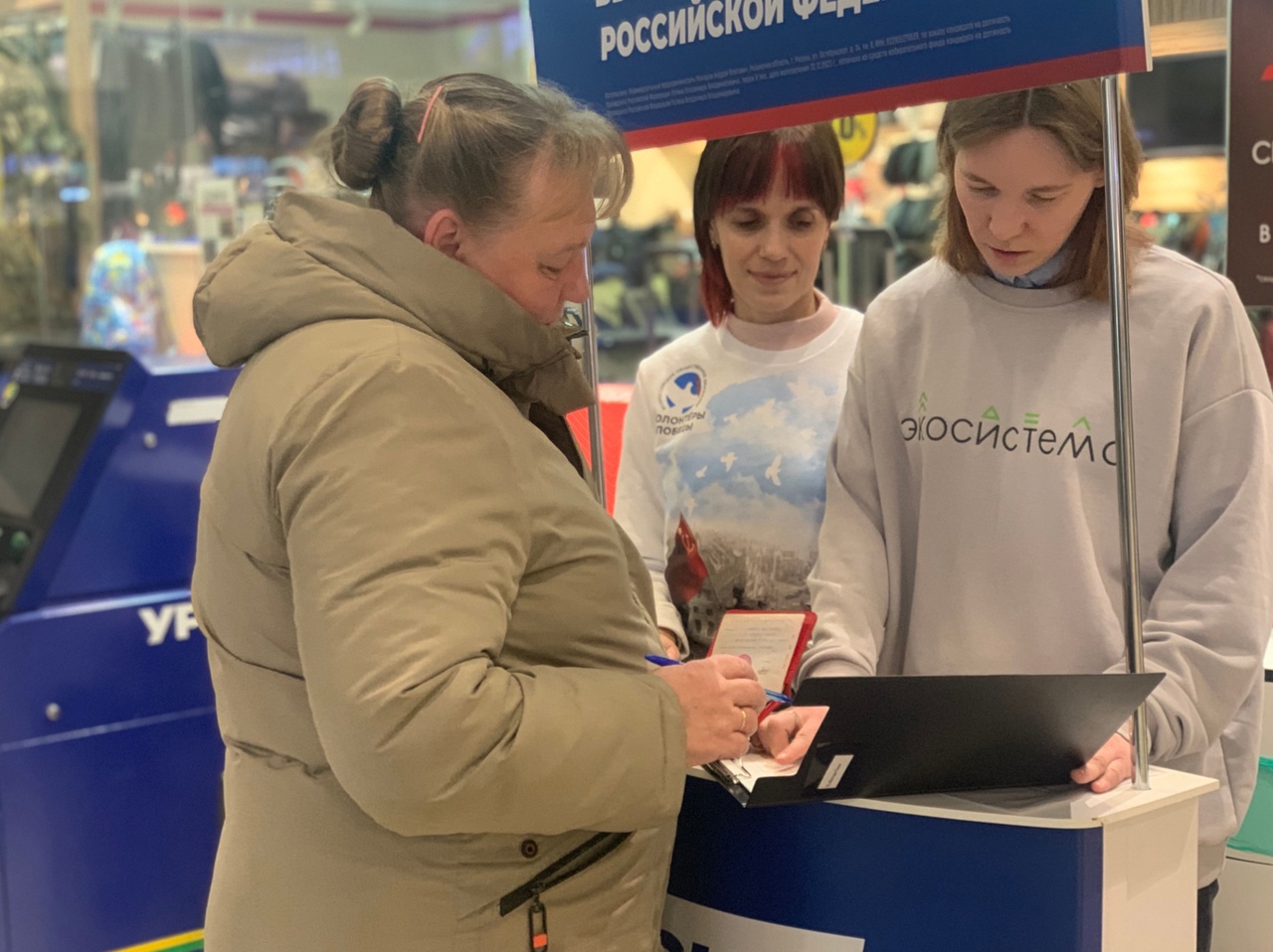 – Мы собираем подписи в поддержку Владимира Путина на общественных началах, – пояснила представитель движения «Экосистема» Алевтина Белоглазова. – Как представителю молодежи мне импонирует то, что за последние пять-шесть лет правительством сделано очень много для развития волонтерства, поддержки молодежи.