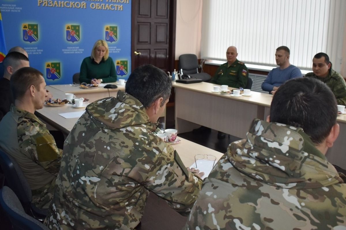 В беседе участвовали начальник сектора социальной защиты населения по Рыбновскому району Галина Венгриняк , куратор участников СВО Ольга Воробьева , координатор Государственного фонда «Защитники Отечества» Екатерина Пашина , военный комиссар Сергей Кравченко , инструктор пункта отбора на военную службу по контракту.