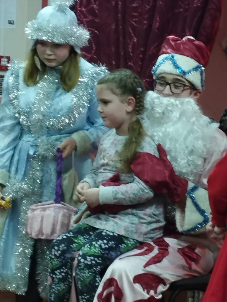 Ребята водили хоровод вокруг нарядной новогодней ёлочки, рассказали стихотворения Дедушке Морозу. Гости мероприятия весело и интересно провели время в дружной компании сверстников. Встреча завершилась новогодней дискотекой.