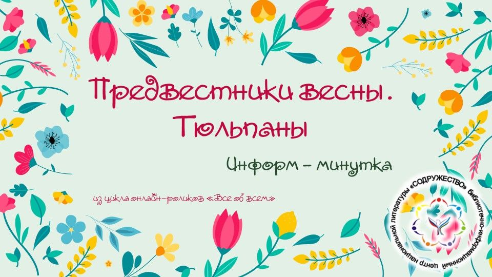 Библиотека-филиал № 14 представляет информ-минутку «Предвестники весны. Тюльпаны» (из цикла онлайн-роликов «Всё обо всём»).