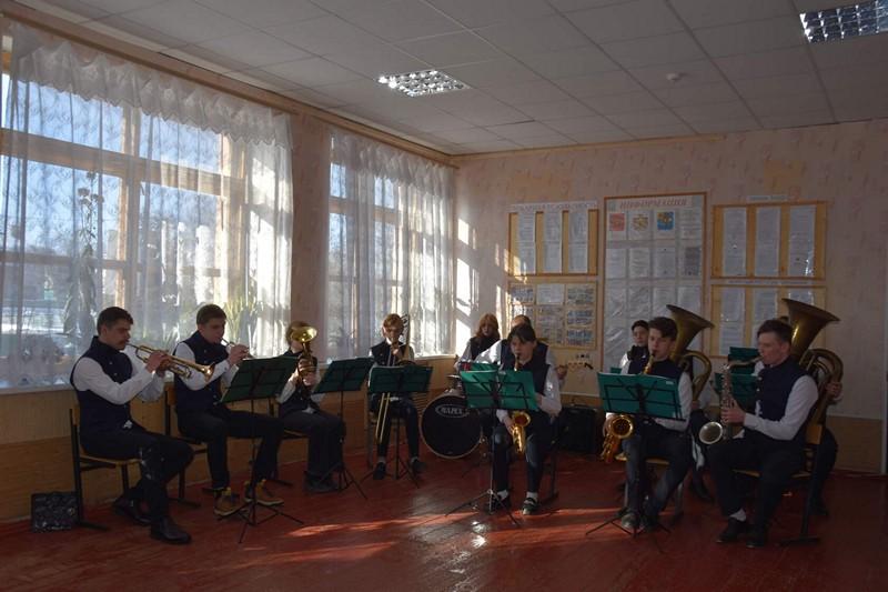 23 февраля в Милославском Доме культуры прошел концерт, посвященный Дню защитника Отечества. До начала концерта в фойе Дома культуры играл духовой оркестр Детской школы искусств (руководитель Сергей Захаров).