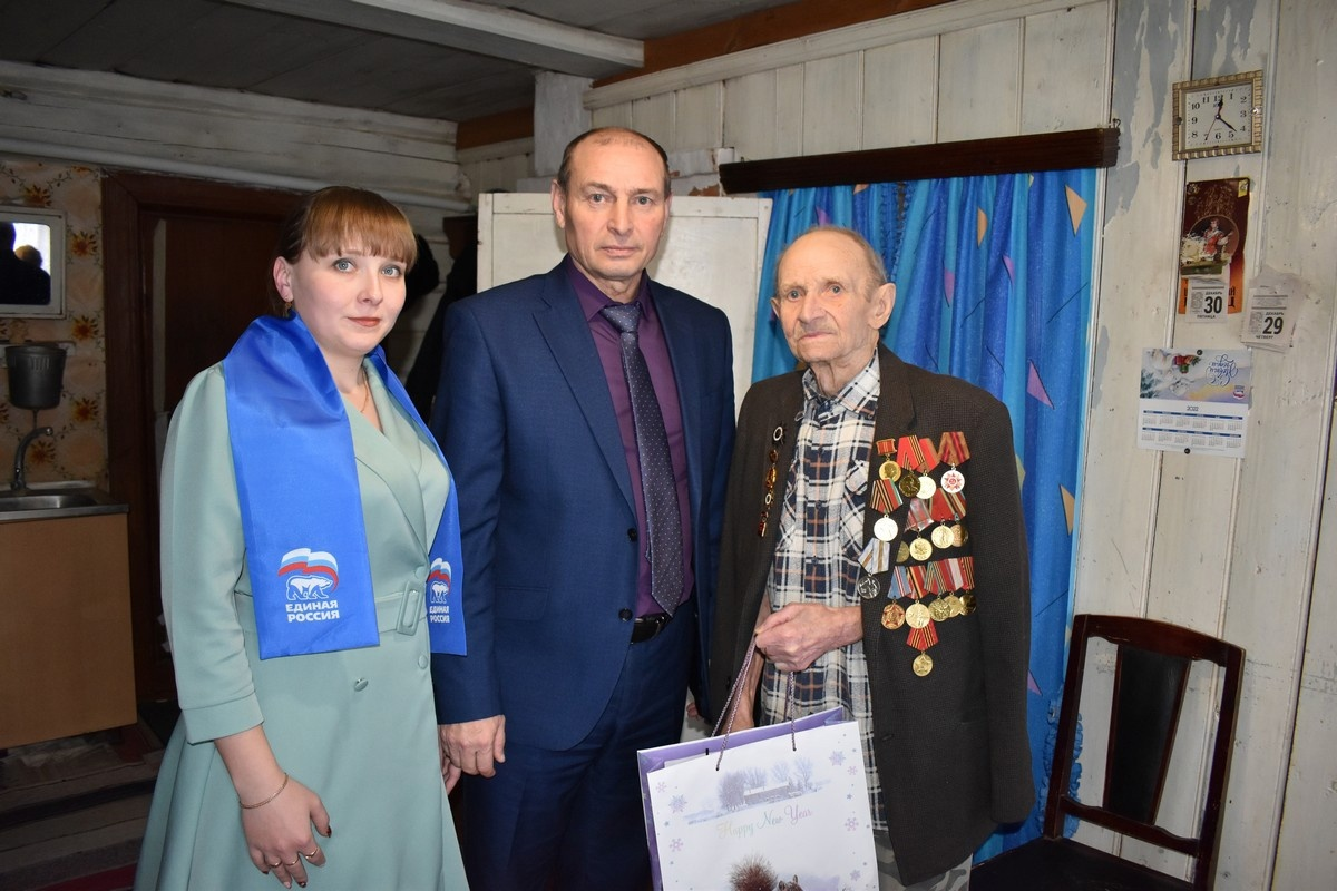 «Ежегодно мы поздравляем наших ветеранов и дарим им новогоднее настроение и подарки. К сожалению, с каждым годом их остается все меньше. Сейчас в нашем районе живут четыре участника Великой Отечественной войны: Иван Павлович Липаткин , Василий Корнеевич Сафронов , Анна Ивановна Мишина , Николай Максимович Моржавиков . Навестили каждого из них. Пожелали им здоровья, благополучия и мирного неба над головой», – подчеркнул Юрий Виноградов.