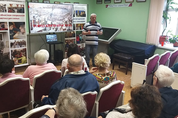 В рамках этой работы 25 апреля в ГБУК РО «Рязанская областная специальная библиотека для слепых» состоялась лекция «Город князя Ярослава». Ее прочитал главный методист Рязанского музея путешественников Петр Завишо.