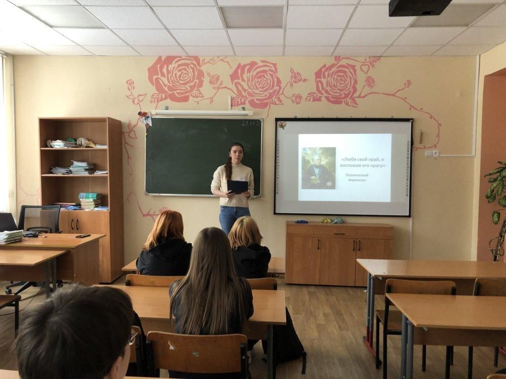 5 декабря библиотека-филиал № 4 МБУК «ЦБС г. Рязани» провела для учащихся 7 класса МБОУ «Школа № 64» поэтический вернисаж «Любя свой край, я воспеваю его красоту», приуроченный к 220-летию со дня рождения Ф. И. Тютчева.