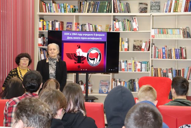 Урок мужества сопровождался медиапрезентацией, благодаря которой участники окунулись в героические события военных лет, вспомнили историю создания подпольной организации, имена молодых людей, бросивших вызов фашистам.
