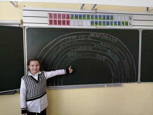 В рамках реализации городской программы по профессиональной ориентации «Путь к профессии» в школе N 106 проходят классные часы «Радуга профессий». Сегодня учащиеся 4А класса приняли участие в профориентационной игре «Найди свою профессию», в ходе игры ребята расширили свои знания о мире профессий, получили новую информацию о качествах, присущих людям тех или иных профессий, узнавали много интересного о различных профессиях, в конце занятия разгадывали кроссворды и ребусы.