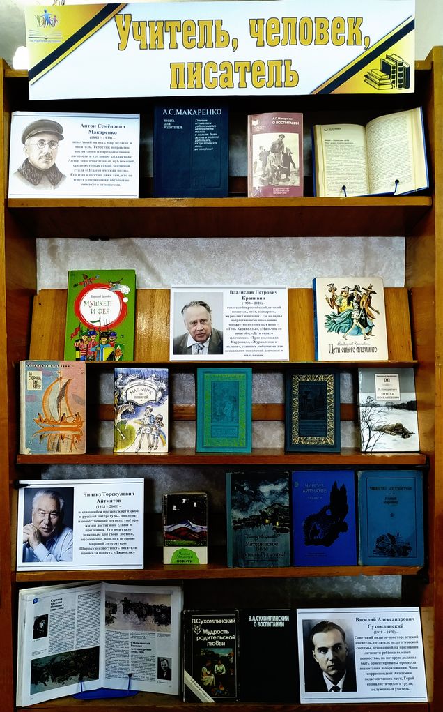В детской библиотеке, в рамках этого важного события открыта выставка «Учитель, человек, писатель». На выставке представлены интересные и познавательные книги о профессии учителя, произведения тех авторов, которые в свое время работали в школе, занимались обучением и воспитанием детей.