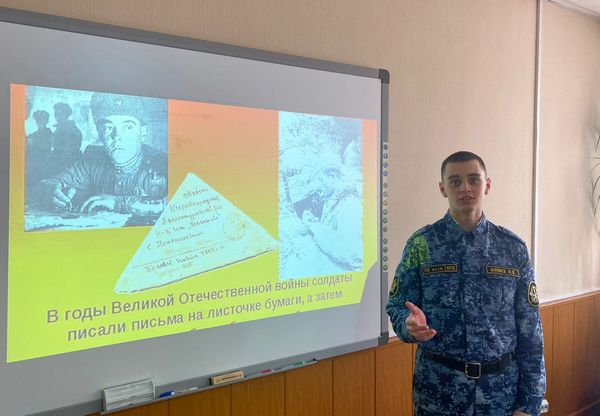 Проект «Ах, письма в треугольниках солдатских!», проведенный доцентом Ириной Жебраткиной и курсантами 113 группы юридического факультета, был посвящен роли писем в военное время. Курсанты вспомнили историю солдатских писем – живых свидетельств мужества и героизма нашего народа в годы Великой Отечественной Войны, поговорили о ценности этих самых дорогих реликвий, бережно хранящихся в семьях ее участников. Доклад о всероссийской акции «Письмо солдату» позволил участникам проекта почувствовать, насколько важны участникам боевых действий искренние слова поддержки и благодарности за добросовестную службу, стойкость и мужество.