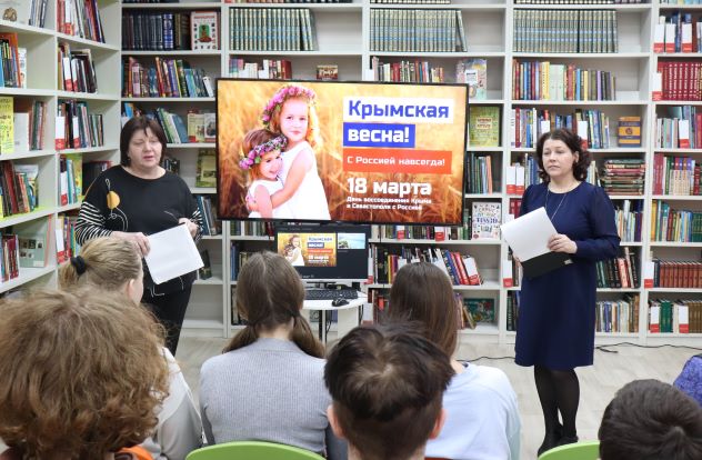 В Центральной библиотеке им. Л.А. Малюгина и её обособленных подразделениях в рамках фестиваля «Крымская весна» прошли мероприятия для школьников и студентов, приуроченные ко Дню воссоединения Крыма с Россией.