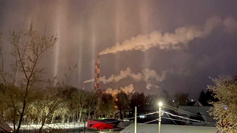 Рядом с Рязанской ГРЭС засняли разноцветные световые столбы
