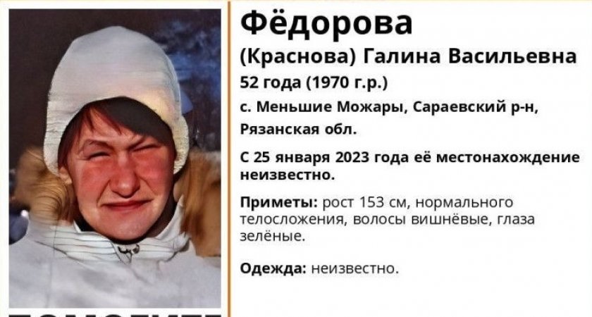 Жителей Рязанской области просят помочь в поисках пропавшей 52-летней женщины.