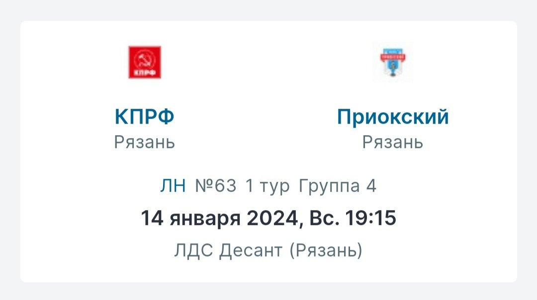 Хоккейная команда «КПРФ» сразится с ХК «Приокский» 14 января в 19:15, поддержать команду можно в ЛДС «Десант», сбор 19:00 рядом с входом.