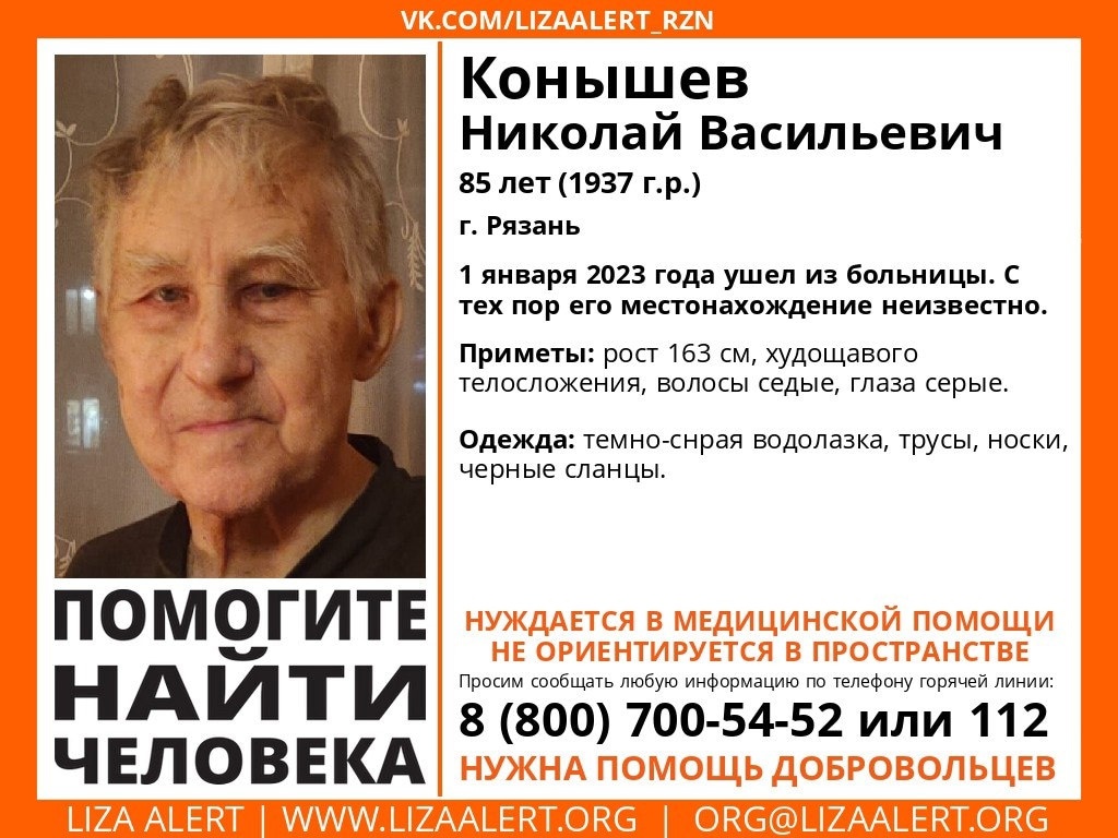 В Рязани 1 января ушёл из больницы пенсионер 1937 года рождения. Его местонахождение неизвестно. Информация появилась в группе поискового отряда «ЛизаАлерт» Рязанской области ВКонтакте.