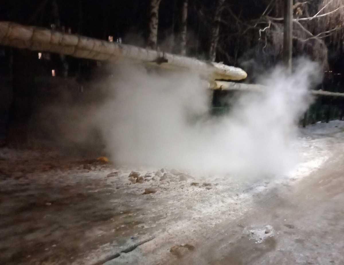 Вечером 11 января на улице Интернациональной Рязани прорвало трубу с горячей водой. Фотографии с места происшествия опубликовал паблик «В районе Канищево. RZN 62 регион, Рязань, Ryazan».