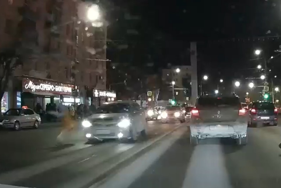 Вечером 22 февраля на Первомайском проспекте, в районе площади Победы легковой автомобиль сбил человека. Видео момента ДТП опубликовала группа «Подслушано у водителей Рязани».