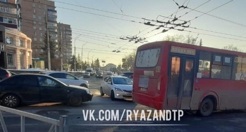 В центре Рязани столкнулись маршрутка №41 и Chevrolet