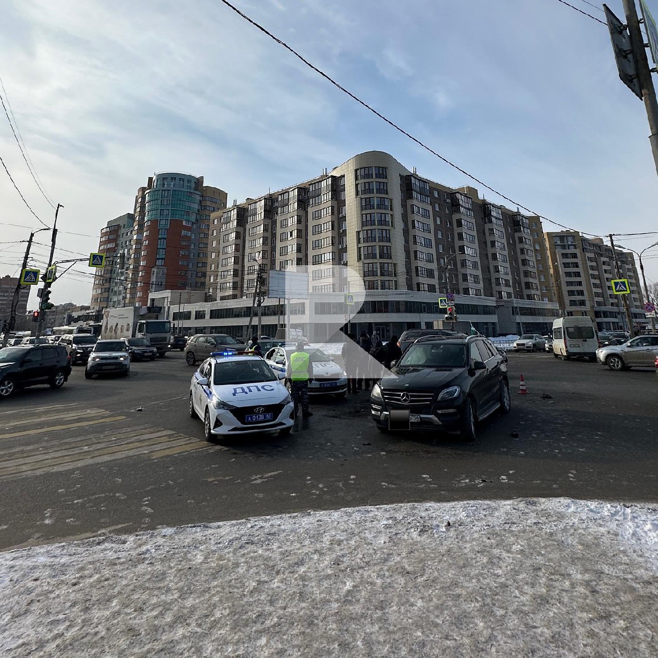 В 13.40 на перекрёстке Солотчинского шоссе с улицей Кальной столкнулись «Мерседес Бенц» и «Рено Дастер».