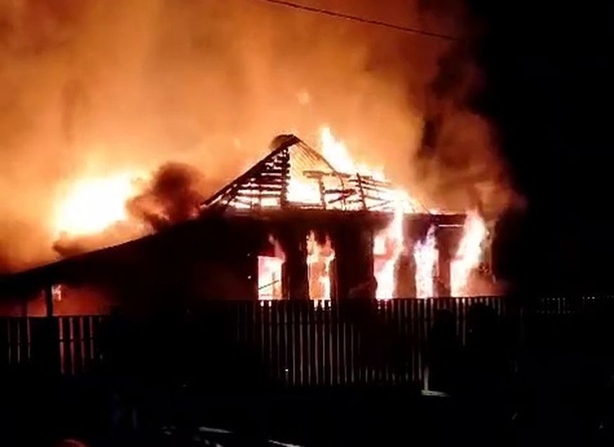 Когда пожарные прибыли на место, происходило открытое горение двухэтажного деревянного дома. Есть угроза двум соседним домам.