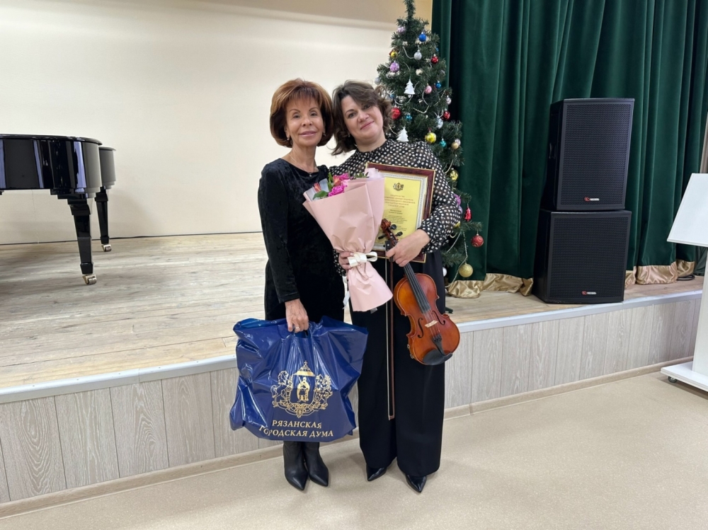 Депутат Рязанской городской по округу №15 Галина Трушина вручила памятный подарок Рязанской городской Думы заместителю директора по учебно-воспитательной работе детской школы искусств №2 Алине Филимоновой.