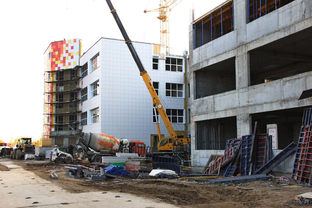 На данный момент дополнительные бригады уже приступили к работе, и график производства восстановлен. В настоящее время идет монтаж кровли на одной из секций, также возводятся стены четвертого этажа и перекрытия актового зала. На объекте активно ведутся фасадные работы, устанавливаются окна для завершения «теплого» контура.