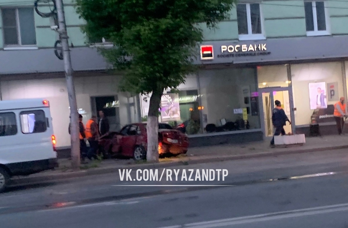 Рано утром 24 мая в центре Рязани легковой автомобиль врезался в здание. Фото последствий аварии опубликовала группа «ДТП.