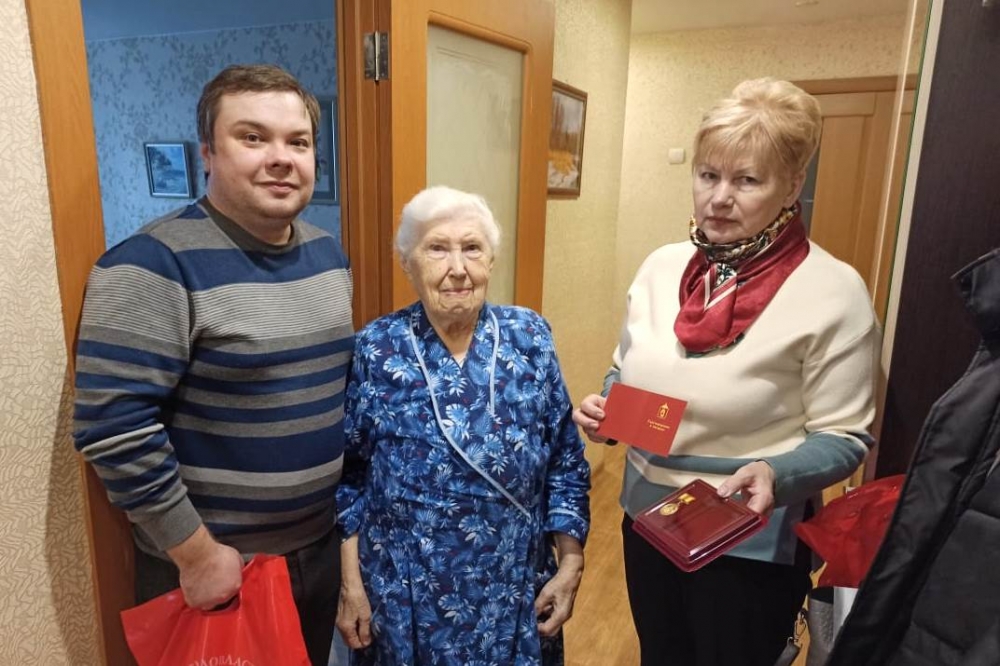 Депутат Рязанской городской Думы Лилия Кривцова вручила медали «Рязань - город трудовой доблести» ветеранам Великой Отечественной войны Валентине Алексеевне Ереминой, Василию Михайловичу Калякину, Екатерине Григорьевне Лобовой,
