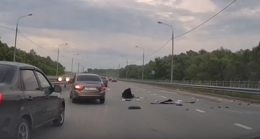 На дороге Северного обхода в Рязани засняли раскидывающего вещи мужчину