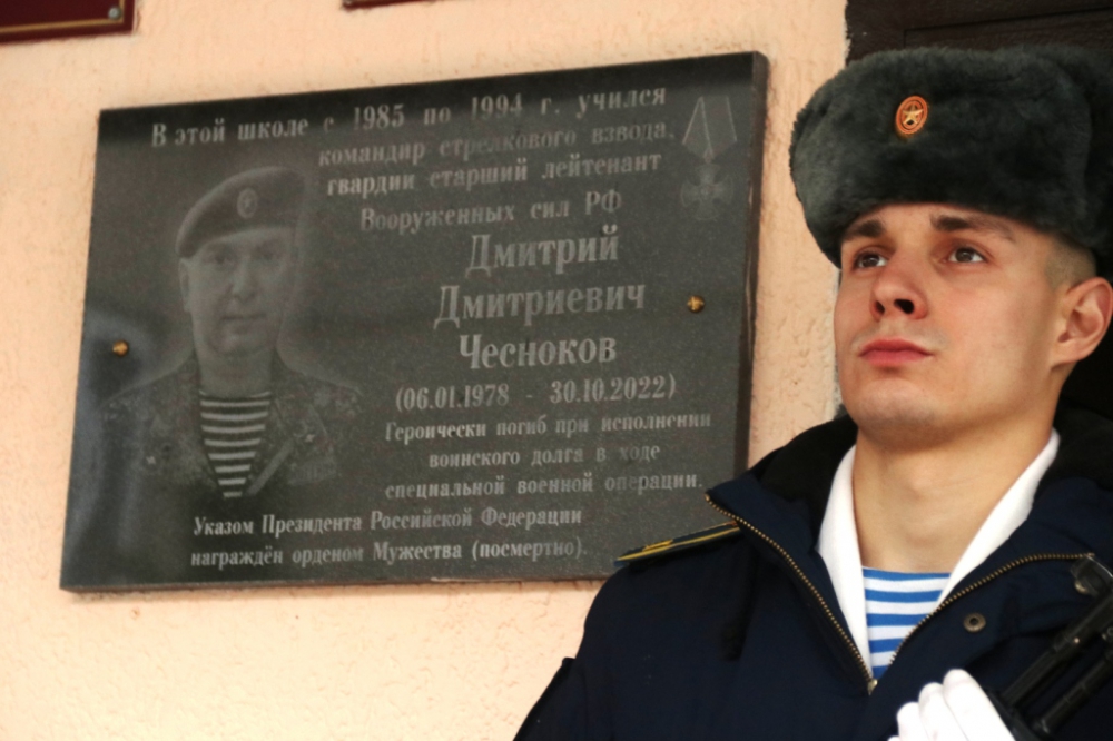 16 октября состоялась торжественная церемония открытия мемориальной доски выпускнику школы №63, участнику специальной военной операции, командиру стрелкового взвода, старшему лейтенанту ВС РФ Дмитрию Чеснокову. В ней приняли участие родные и близкие героя, преподаватели и учащиеся школы, представители общественных организаций.