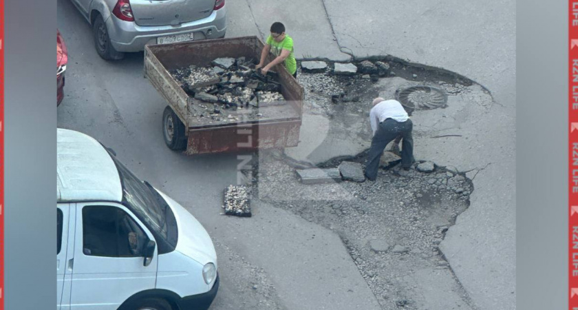 «Не дождались ремонта дороги и своими силами решили заделать ямы. Огромное спасибо вам», — написала автор кадров в телеграм-канале rzn_life.