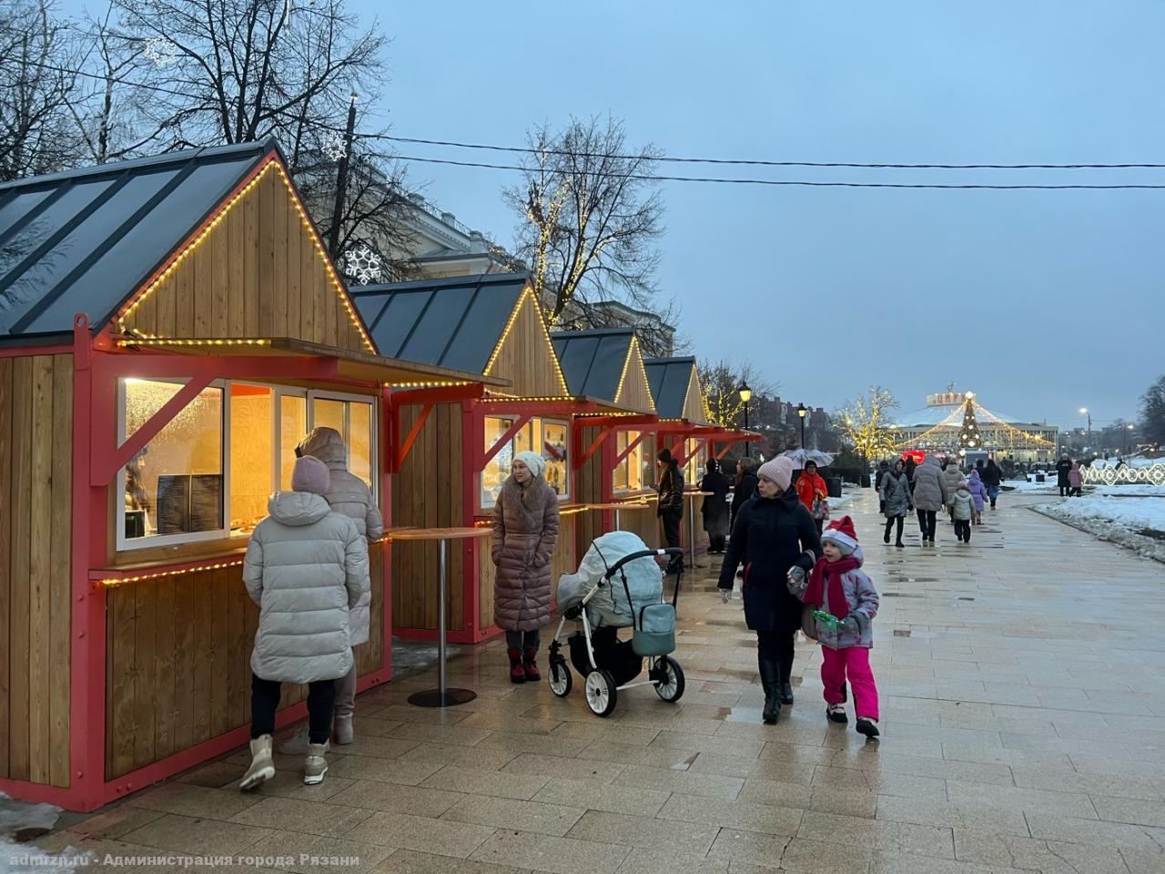 Местные ремесленники предлагают большой выбор подарков к празднику: новогодние игрушки, керамические фигурки, уникальные сувениры и многое другое. Рязанцы и гости города могут приобрести горячий чай и кофе, безалкогольный глинтвейн, блины, различную выпечку от предприятий общественного питания.