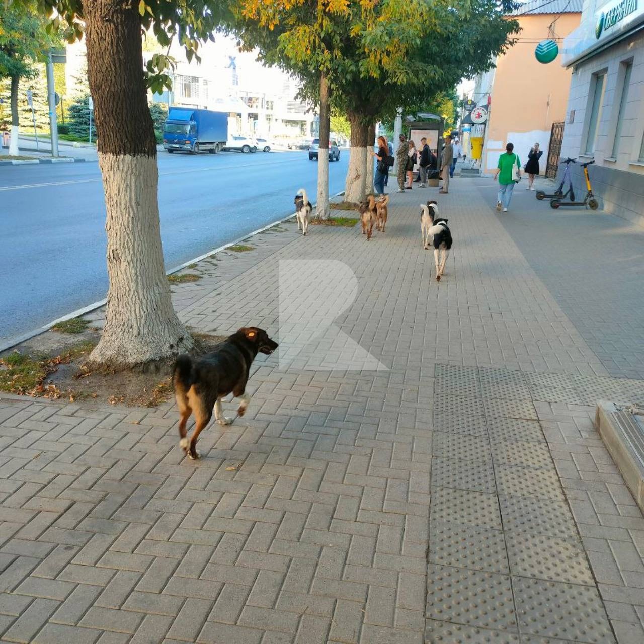 Утром 1 сентября в центре Рязани горожане засняли стаю собак.