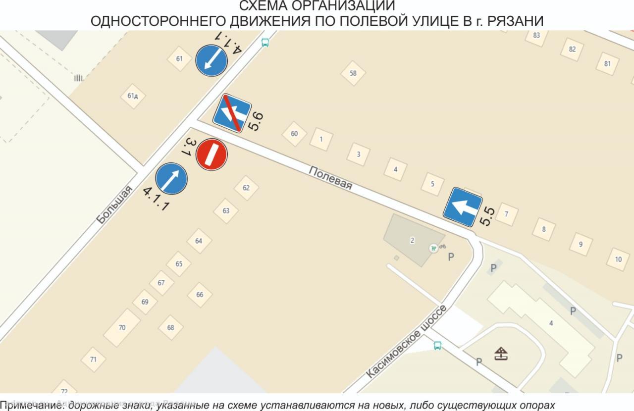 Новая схема движения проработана в связи с необходимостью изменения автобусного маршрута №20. Предполагается, что для улучшения качества транспортного обслуживания жителей при движении от конечной остановки «1-й микрорайон» в сторону центра автобус будет проезжать через ул. Полевую по улице Большой.