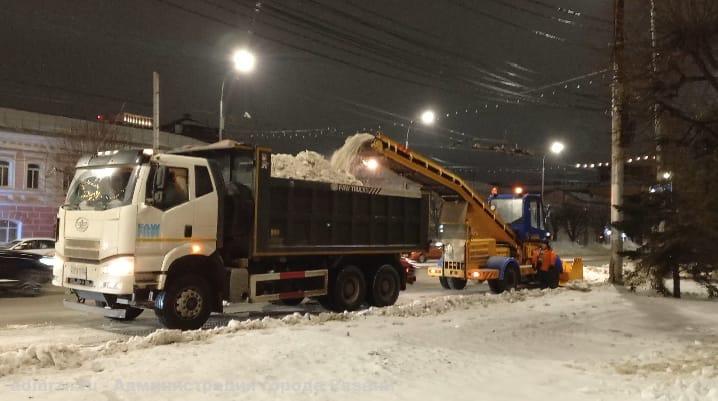 В ночь с 23 на 24 января Дирекция благоустройства вывозила снег на Театральной площади, Первомайском проспекте, площади Мичурина.