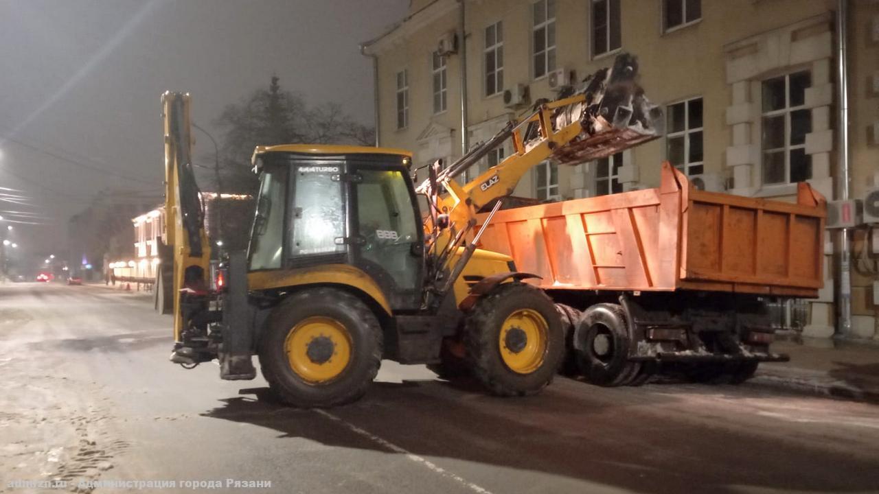 Ночью вывозили снег с путепровода на Куйбышевском шоссе, остановке «Дом художника». Тротуары чистили на улицах Ленина, Циолковского, площади Театральная.