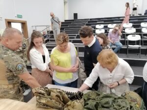 Выступающий рассказал об исторических предпосылках и необходимости проведения специальной военной операции, об условиях контрактной службы, была продемонстрирована экипировка участника СВО.