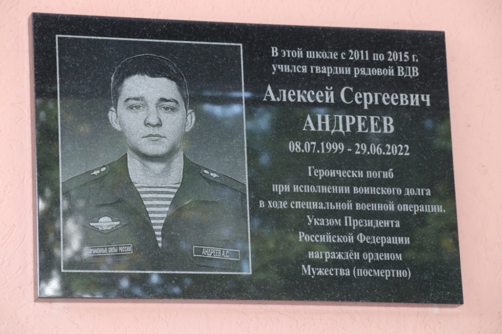 Память гвардии рядового ВДВ Алексея Андреева увековечили на фасаде школы №53