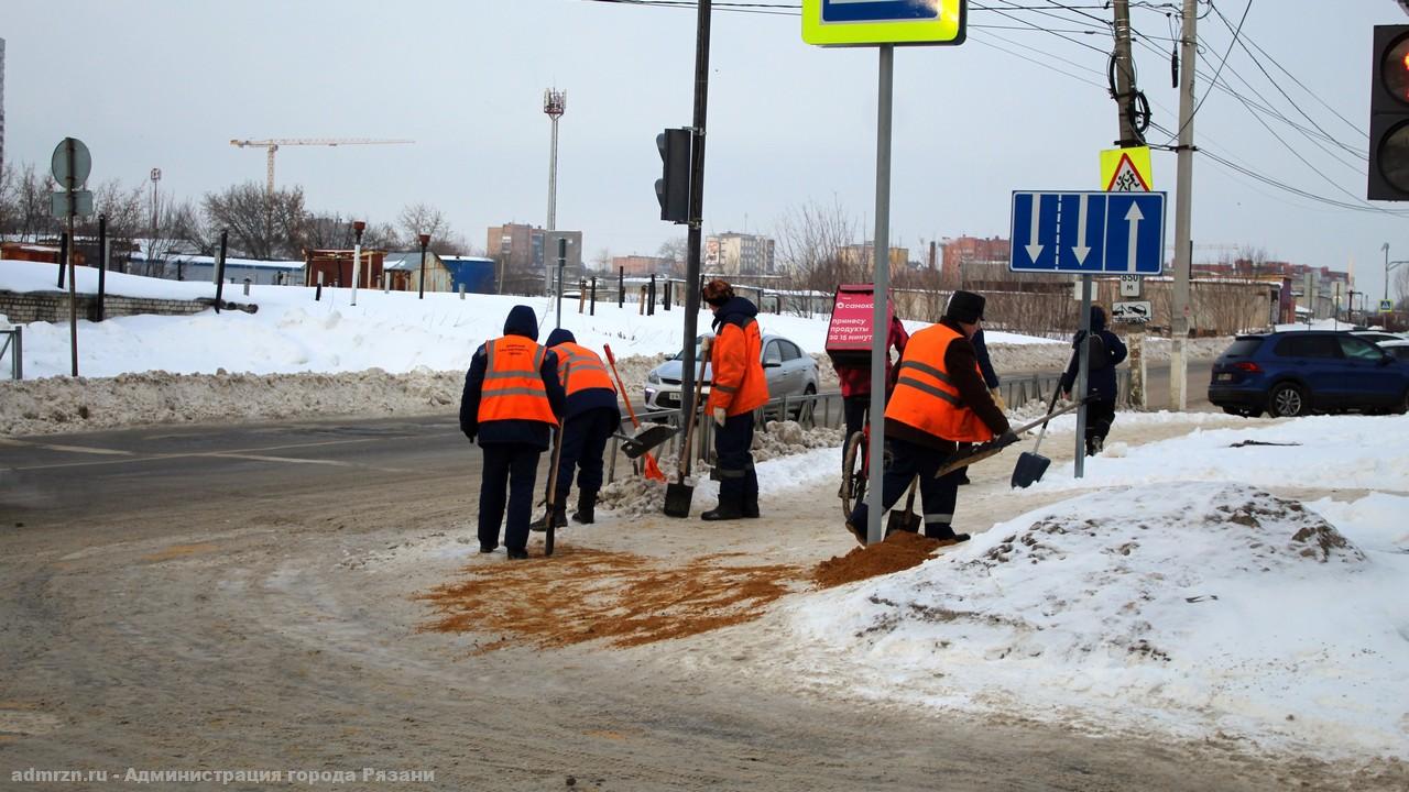 Тротуары чистили на улицах Мехзавода, Октябрьский городок, в сквере «Русский чай», Полетаевском сквере, на площади Победы. Обрабатывали пешеходные зоны от гололеда на Малом шоссе, Первомайском проспекте и других территориях.