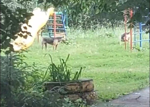 В центре Рязани сняли на видео стаю крупных собак на детской площадке в центре города. Запись опубликовала группа «Рязань».