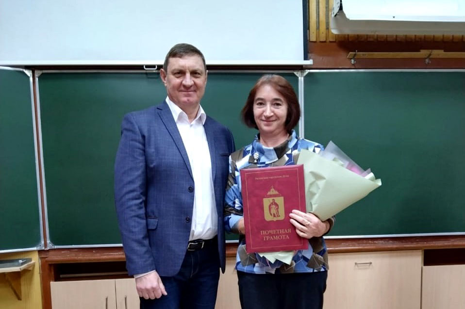 Депутат Рязанской городской Думы по округу №3 Сергей Еремин вручил Почетную грамоту РГД учителю истории школы №24 Ирине Елисеевой.