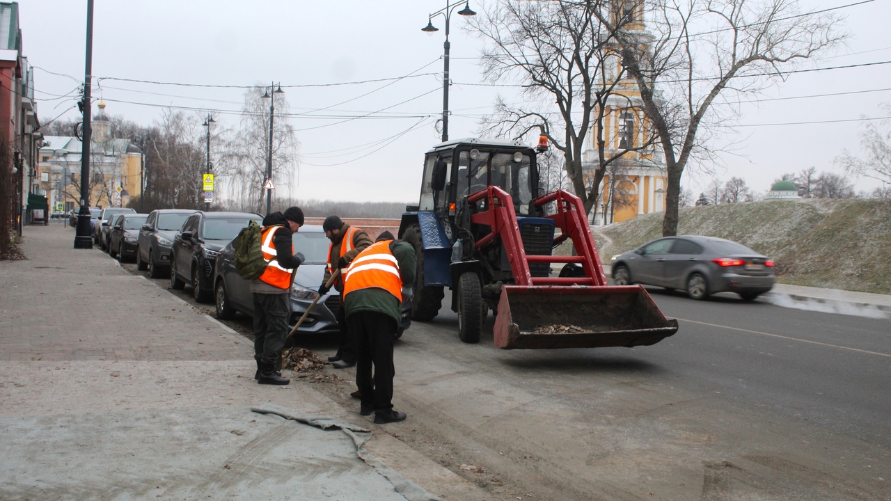 Сегодня днем бригады мехуборки работают на улицах Соборной, Кремлевский вал и Урицкого. Специальная техника очищает тротуары, а сотрудники собирают случайный мусор и очищают урны.