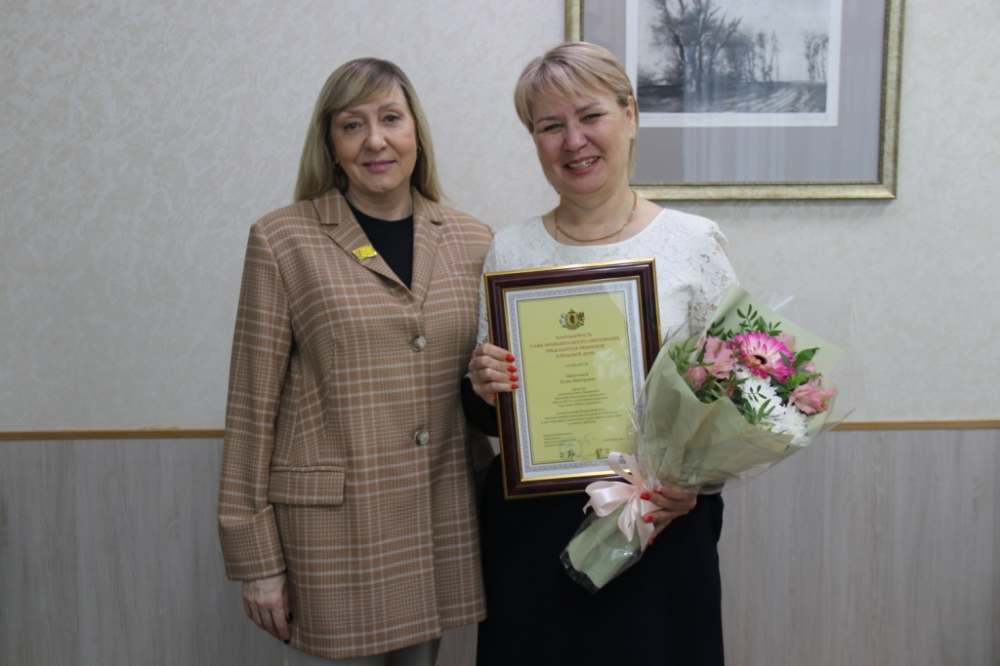 Депутат Рязанской городской Думы по округу №7 Татьяна Чинкова поздравила с юбилеем директора школы №72 Елену Щепотину.