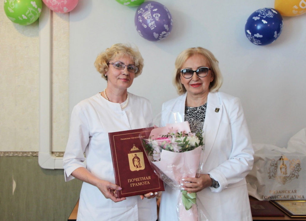 Глава муниципального образования, председатель Рязанской городской Думы Татьяна Панфилова вручила Почетные грамоты Рязанской городской Думы врачу-педиатру подросткового кабинета городской детской поликлиники № 6 Людмиле Лугиной и участковой медсестре педиатрического отделения Эльвере Фокиной за успехи в трудовой деятельности, высокий профессионализм и в связи с празднованием Дня медицинского работника.