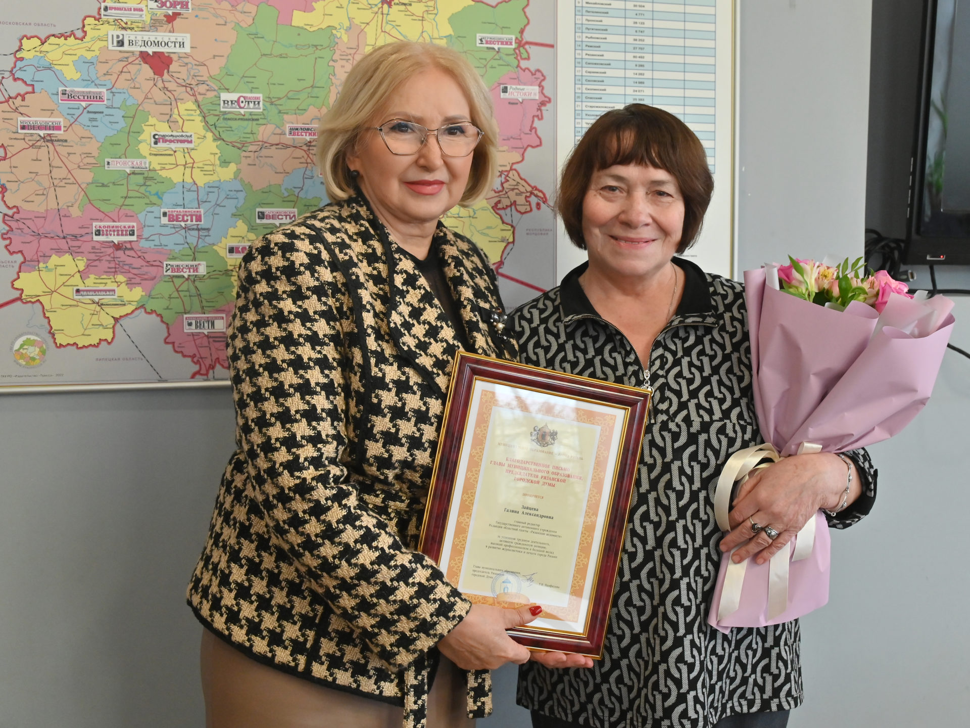 Татьяна Панфилова вручила главному редактору «Рязанских ведомостей» Галине Зайцевой награду Рязанской городской Думы