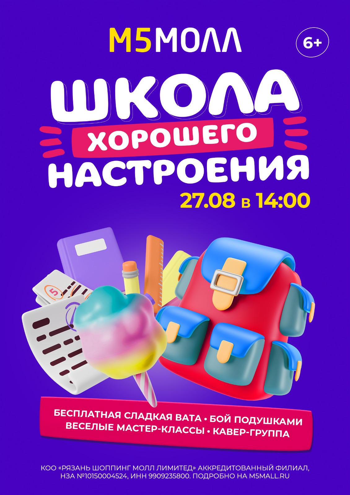 Школа хорошего настроения в ТРЦ «М5 Молл» будет работать в воскресенье, 27 августа, с 14:00 до 17:00 в зоне фудкорта. Вход свободный.