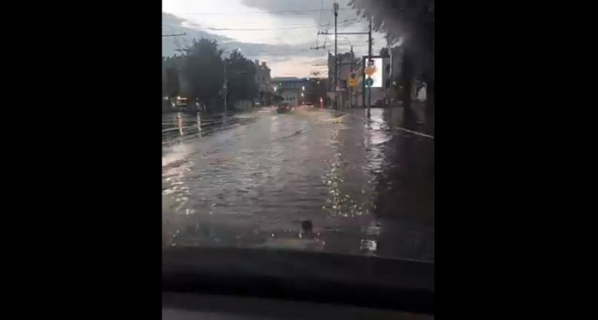 Улицу Дзержинского в Рязани 24 мая затопило из-за ливня