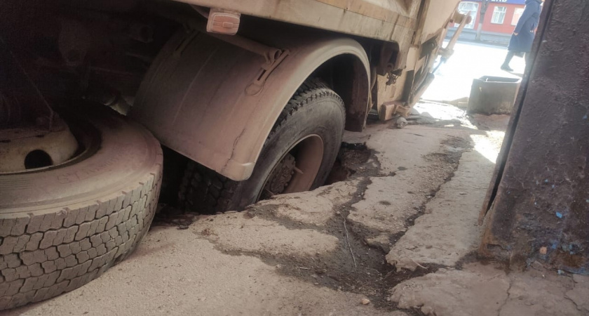 Фото: соцсети В Рязани под асфальт частичного провалился мусоровоз. Инцидент случился на Первомайском проспекте недалеко от дома №56.