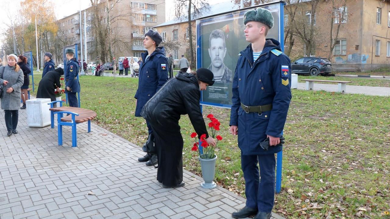 Память тех, кто отдал жизнь, выполняя воинский долг, почтили минутой молчания. К портретам возложили живые цветы.