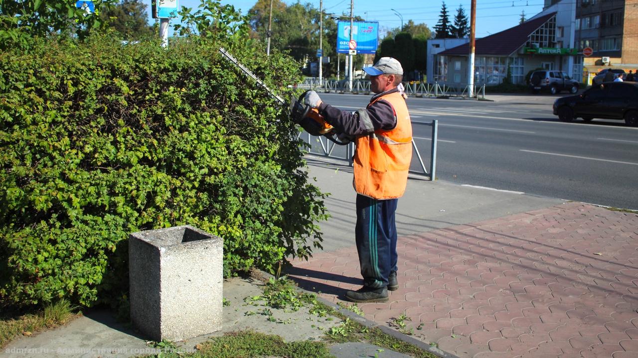 В областном центре проводится уборка скверов и стрижка кустарника